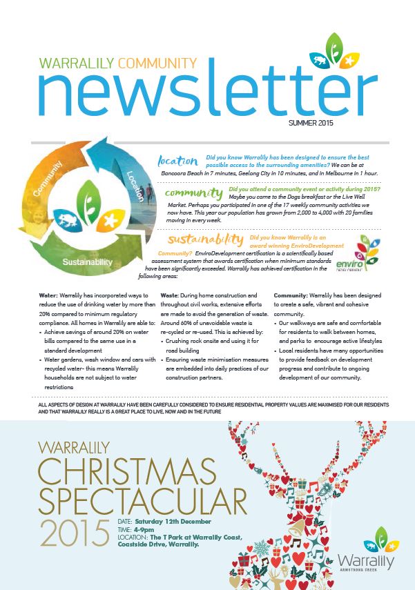 ...If you live in Warralily, or plan on moving to Warralily, this newsletter is for you. If youve taken a great photo of the creek, if your child has drawn a picture of the playground or written a story about your new home. If you have welcomed a new baby, recently moved in, recently retired, won a grand final or celebrated any of lifes milestones, let us know so we can share it with the Warralily community.